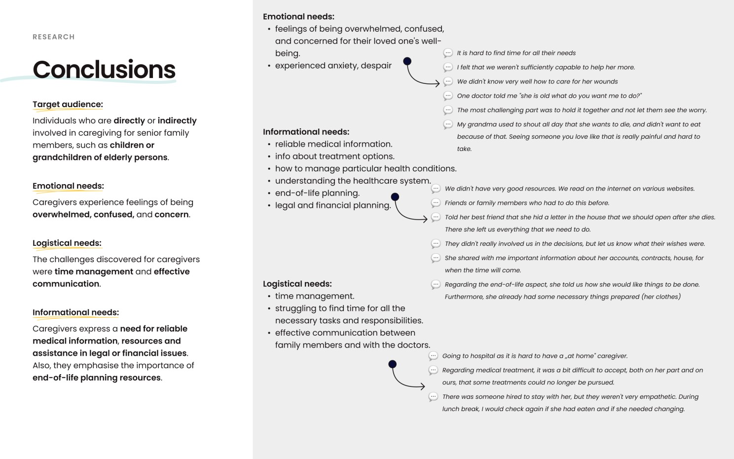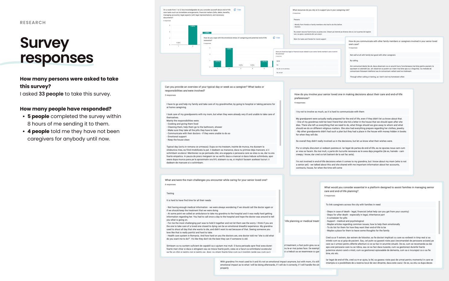 Even though time was short and I opted for a survey instead of interviews (which would have provided more help in this situation by allowing me to ask additional questions and better understand user needs), gaining insights directly from people who have experience as caregivers or have direct knowledge of caregiving was immensely helpful in obtaining useful feedback.