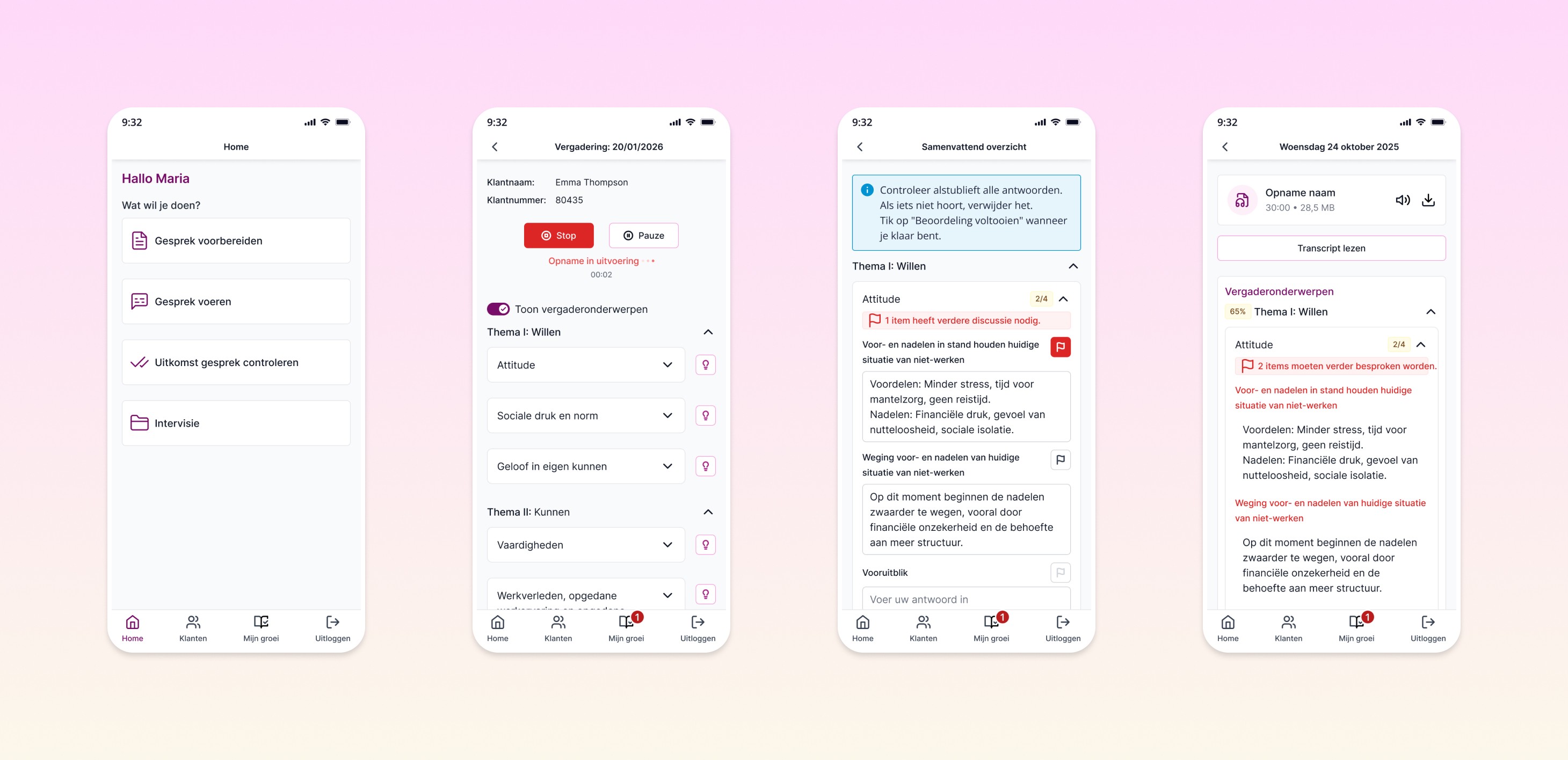 Work coaches needed a simpler way to manage client conversations, action plans, but also the progress across complex coaching sessions with their clients.
